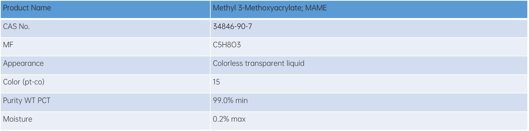 Methyl 3-Methoxyacrylate (MAME) is an important organic synthesis intermediate, widely used in the field of pesticides, pharmaceuticals and polymer materials. It can be used in the synthesis of insecticide fludioxonil, herbicide benzopyralid, fungicide silymethoxam, pharmaceutical cephalothin and for the modification of aqueous polymers.
