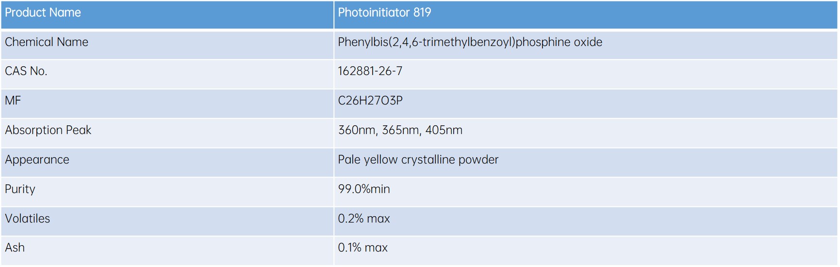 | 3 | UV-907 | 2-Methyl-4-(Methylthio)-2-Morpholinopropiophenone | 71868-10-5 |
