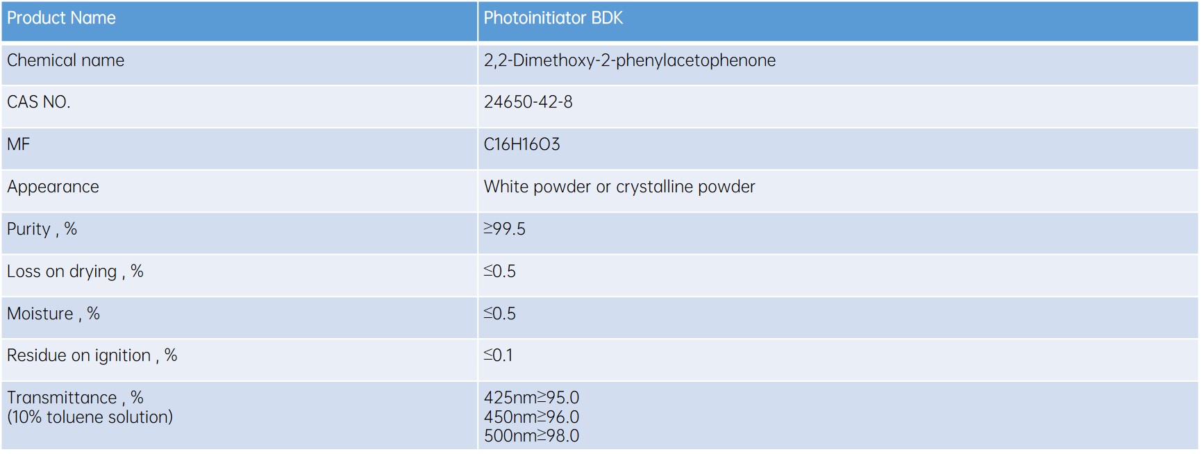 | 5 | BDK | 2,2-dimethoxy-1,2-diphenylethanone | 24650-42-8 |