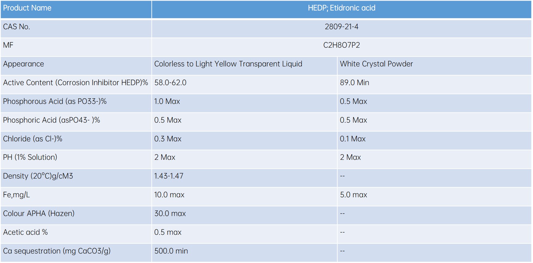 | 6 | HEDP | Etidronic Acid | 2809-21-4 |