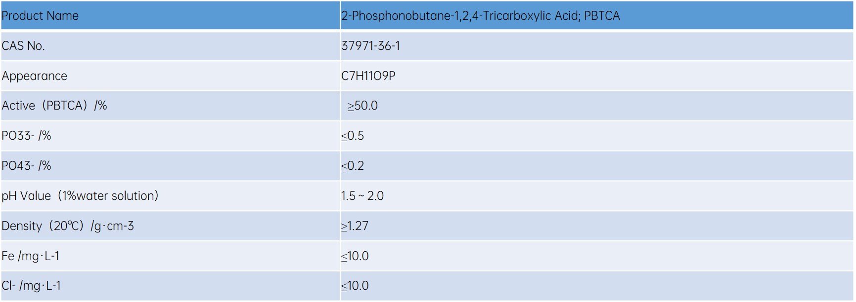 PBTCA is the most widely used in the compounding of high-efficiency scale and corrosion inhibitor, and it is one of the best performance products, and also an excellent stabilizer for zinc salt.